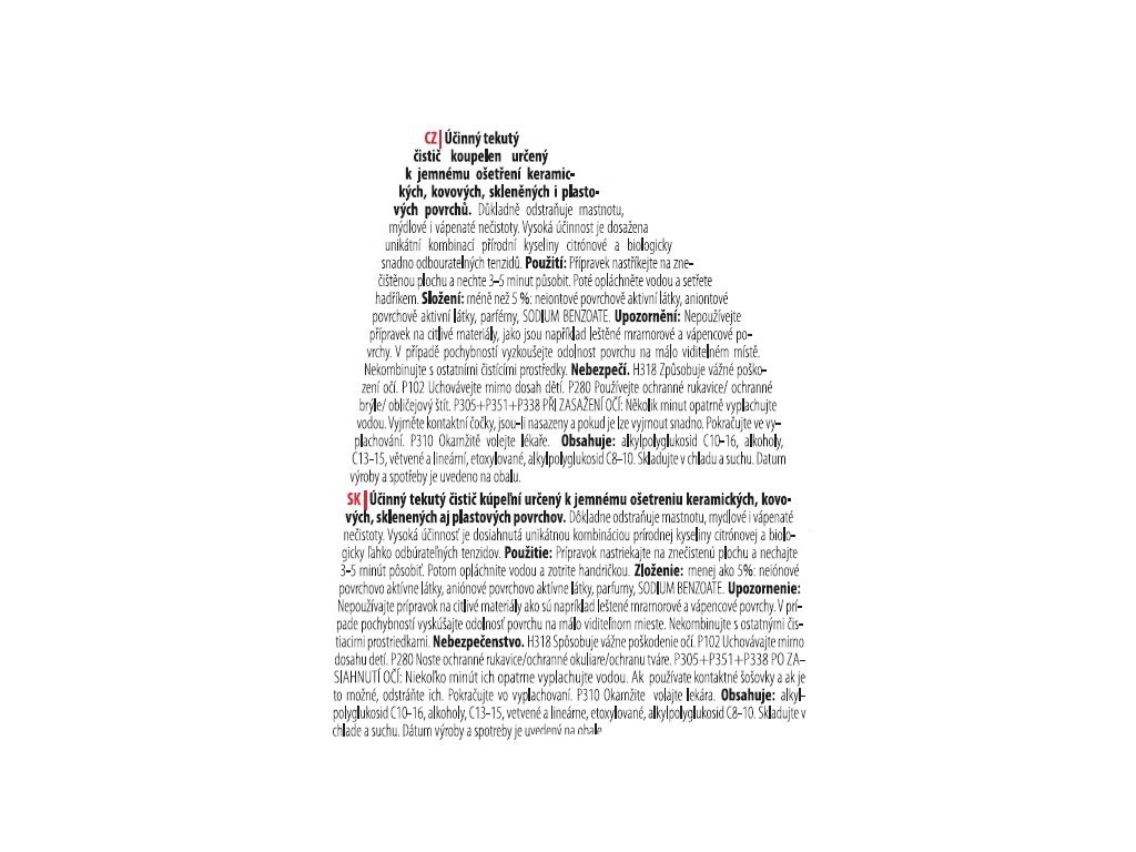 Feel eco čistič koupelen unikátní složení je založeno na snadno biologicky odbouratelných tenzidech a přírodně identické kyselině citronové.