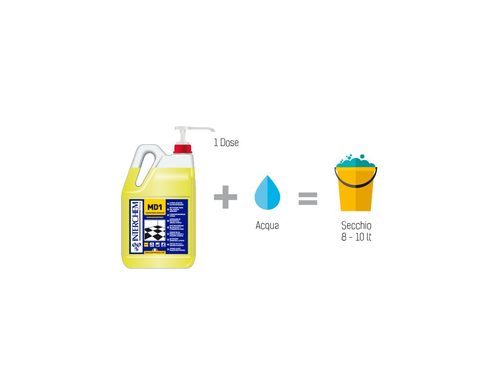 MD1 - láhev 1l Super-koncentrovaný citrusově parfemovaný detergent určený pro denní údržbu všech druhů podlah, včetně voskovaných. Nevyžaduje oplachování, nezanechává šmouhy,...