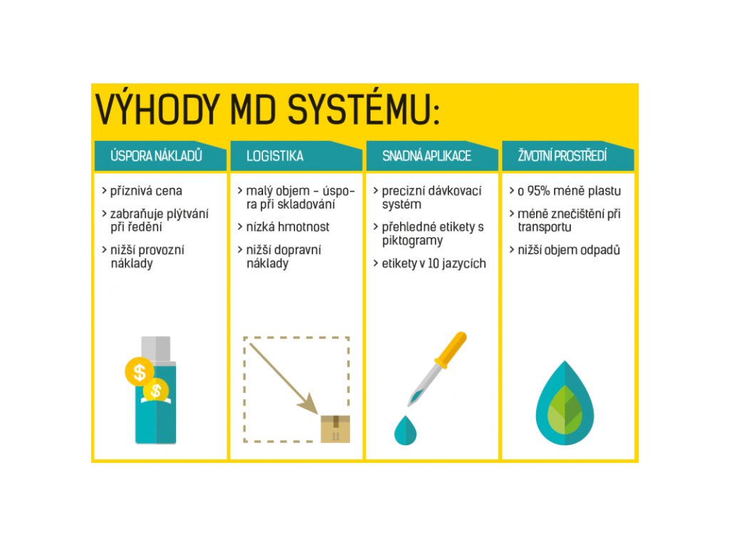 MD13 - láhev 1l - Ultra-koncentrovaný detergent určený k přípravě roztoku pro odmaštění a sanitizaci omyvatelných ploch. Vhodný rovněž k odstranění skvrn z textilií. před...
