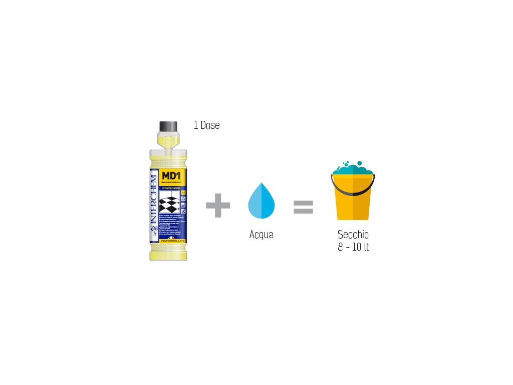 MD6 - láhev 1l - Super-koncentrovaný víceúčelový detergent určený pro očistu středně znečištěných podlah a jiných povrchů v kuchyních a koupelnách. Po použití jeho vůně...