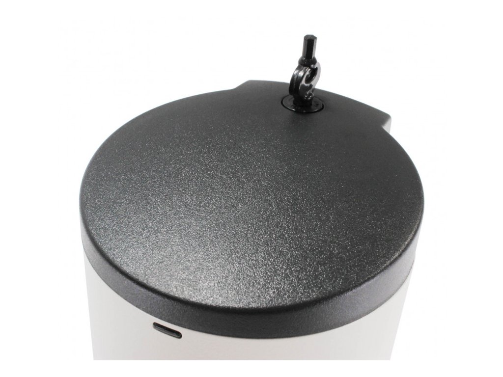 Dávkovač je vybavený nádobkou o kapacitě 700 ml – až 1400 vydání dezinfekce nebo mýdla. Nová náplň se do dávkovače jednoduše nalévá širokým hrdlem po sundání horního krytu. Nejste tak vázání jen na jednoho dodavatele náhradních náplní (sáčků). Kryt je zajištěn zámkem, pro zamezení neautorizované manipulace s dávkovačem. Velký plnící otvor umožňuje snadné plnění i z velkých nádob bez zbytečného nepořádku.
