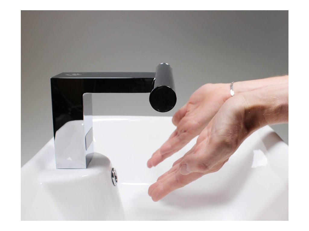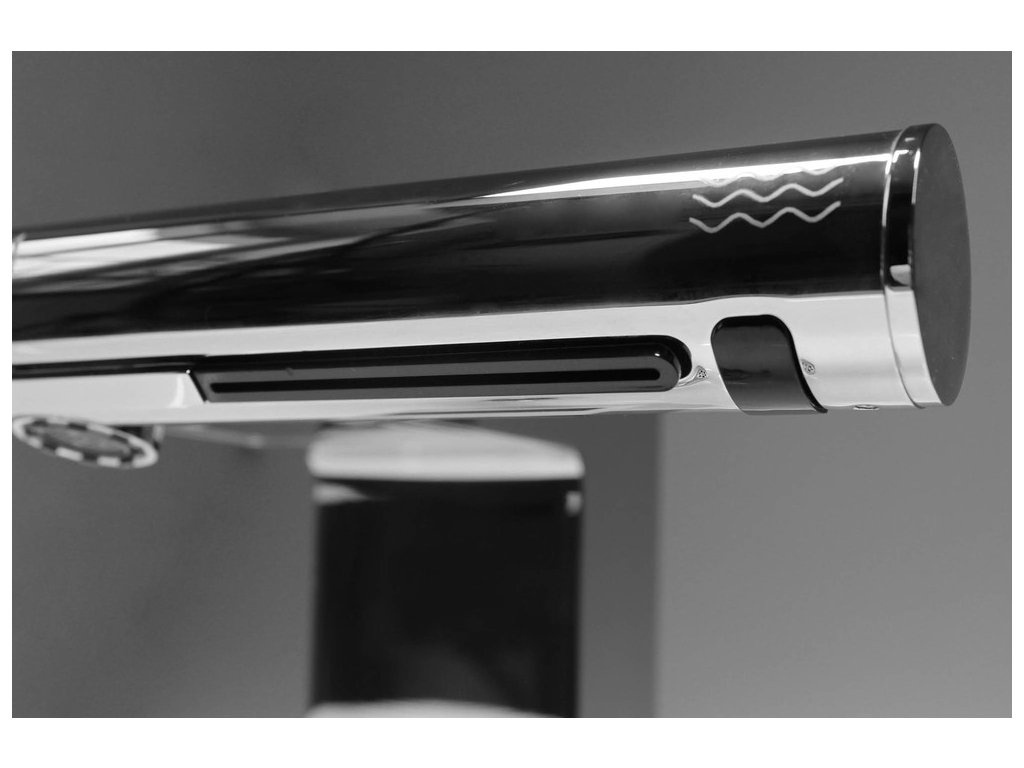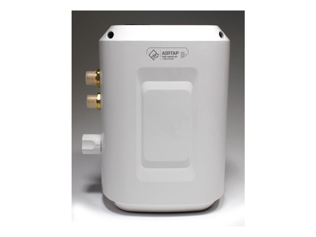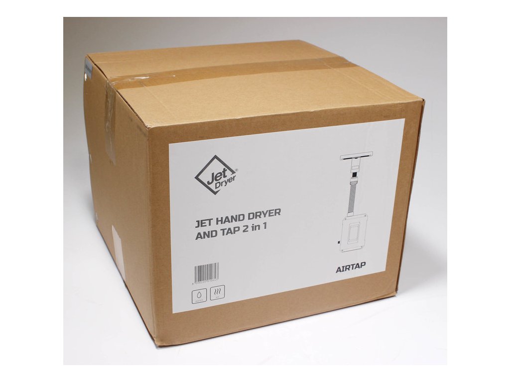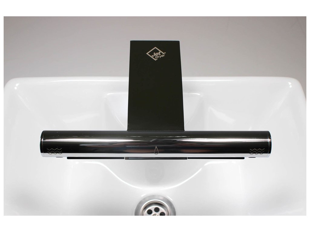 Inovativní vysoušeč JET DRYER AIRTAP Hranatá - chrom, hygienické mytí a sušení rukou – jednoduché, rychlé a pohodlné. Své ruce jednoduše vložíte doprostřed pod vodovodní baterii, automaticky začne téct voda o předem nastavené teplotě. Po stranách baterie se nachází dvě trysky vysoušeče. Spuštění vysoušeče je rovněž bezkontaktní, stačí pod trysky vsunout ruce a dle potřeby je osušit.
