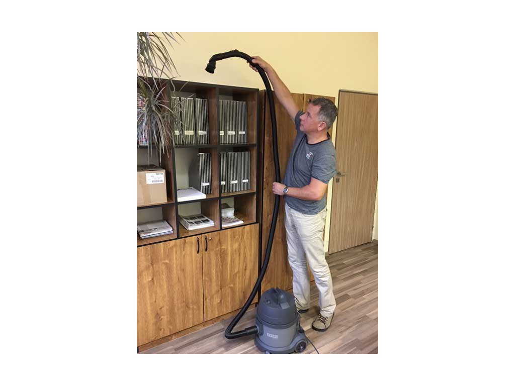 Nový model PROFI 5 je ideálním pomocníkem při úklidu kanceláří, škol, školek a taky bytů a domů. Díky 4 kolečkům je ještě obratnější a stabilnější než předchůdce. Vyrobený z vysoce odolných plastů nejvyšší kvality a váhou pouze 5,8 kg je určený k mnoholetému používání v domácnostech nebo každodennímu použití s velkým zatížením v úklidových firmách. Vybavený teleskopickýma trubkama umožňuje přizpůsobení výšce postavy uživatele a taky malý prostor pro skladování v parkovací poloze. (35x65x105cm) Díky hadici s pracovním dosahem 3 m po vysáváte nejen podlahy, ale i prostory na středně vysokých skříních bez zvedání vysavače. S vysavačem zakoupíte následující příslušenství: dlouhá sací hadice, teleskopická trubka, přepínatelná podlahová hubice na tvrdé/kobercové povrchy, štěrbinová hubice(16cm), kulatá kartáčová hubice a hubice na čalounění a polštáře. Vysavač profesionální PROFI 5 je profesionální vysavač ideálním řešením pro profesionály, kteří potřebují spolehlivý, kompaktní a tichý vysavač s dostatečným výkonem pro každodenní úklidové úkoly v komerčních či lehkých průmyslových prostředích.