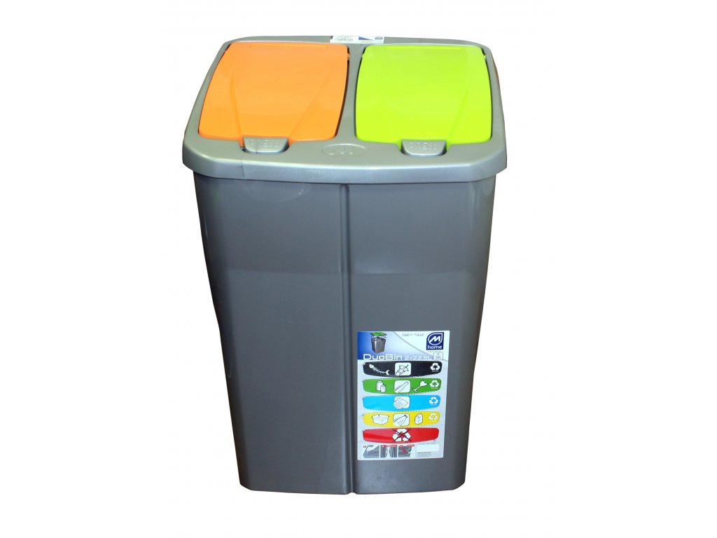 Koš na tříděný odpad dvojitý 45l víko zelené a oranžové