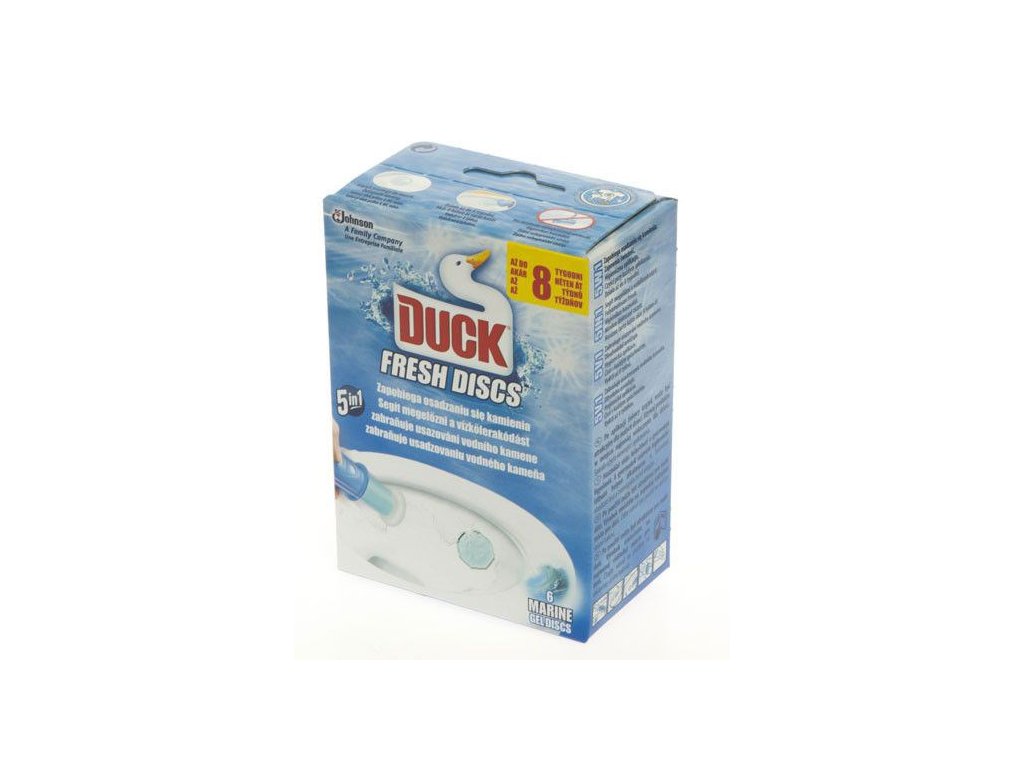 První náhrada za WC závěsy. DUCK Fresh Discs Mořská vůně čistí a osvěžuje WC, ale více hygienickým způsobem. Vydrží až 720 spláchnutí.